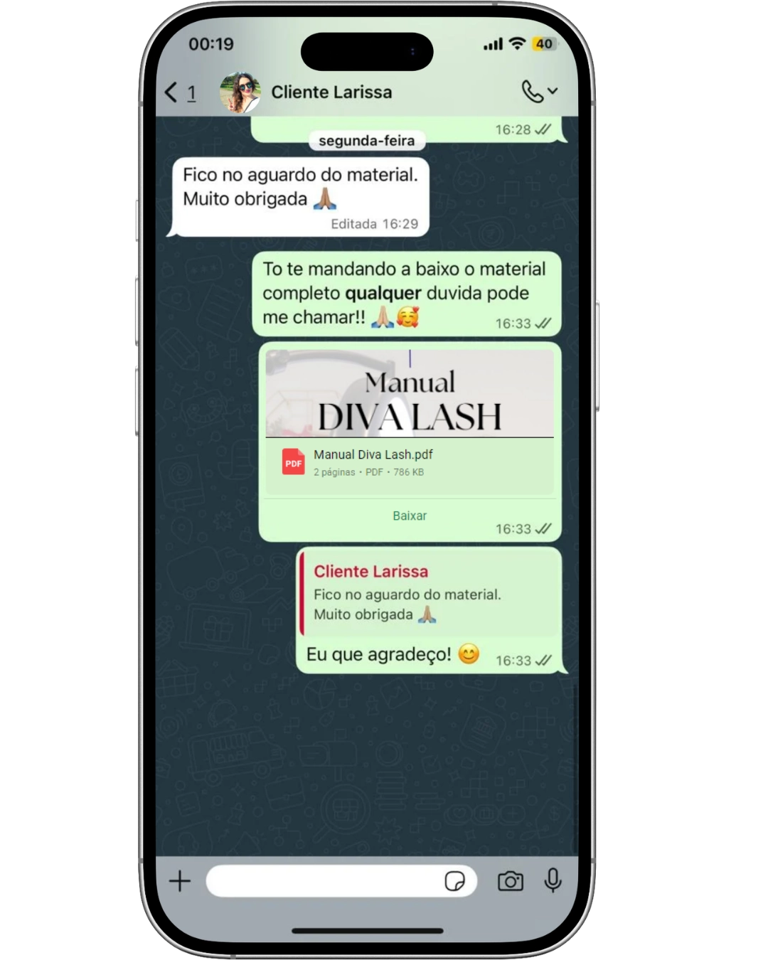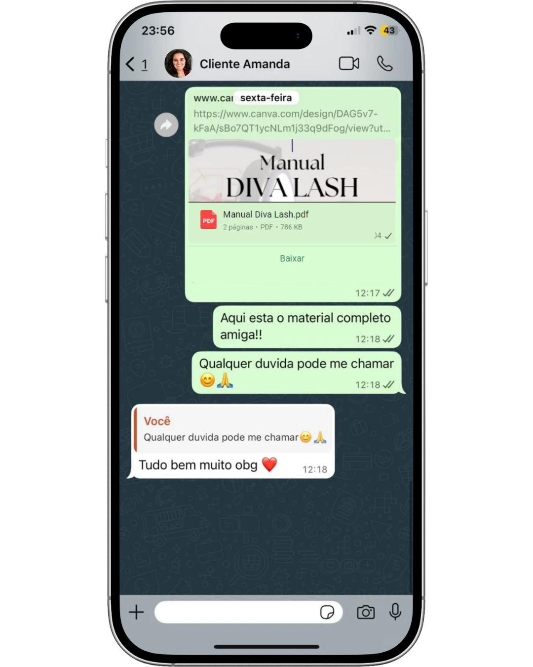 Não! O manual é pronto para ser enviado diretamente pelo seu celular via WhatsApp.